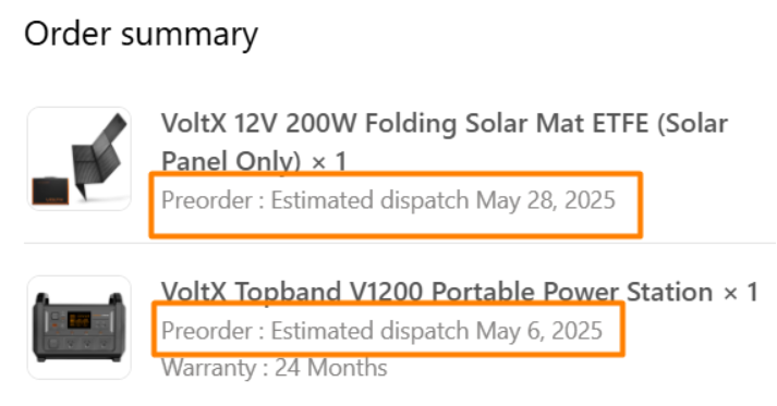 If one of your items is on pre-sale, the dispatch date is specified under the product description on your order confirmation email.